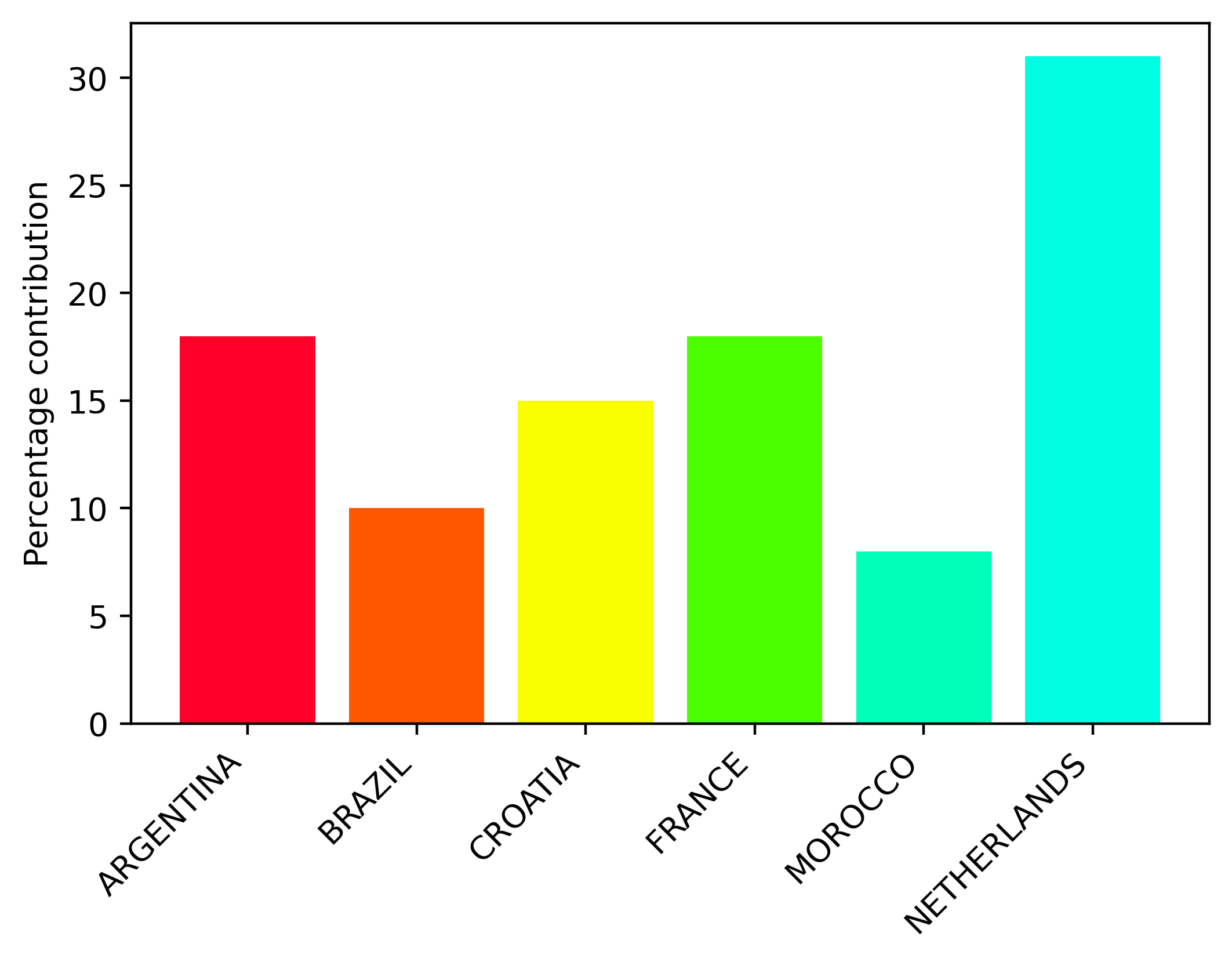 Percentage contribution for each team to the player's final score.